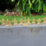 Total height – 6.5 inches & Width – 6.5 inches. Statue weighs approximately 1.15 Kg. This Ramar set is fully made out of Brass & is finished with utmost craftsmanship and is in Antique finish and consists of Shree Ram, Sita, Lakshman and Hanuman. It is also famously known as Ramar Pattabhishekam. This Antique finish will last long if maintained properly.