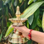 Lighting the Bhadradeepam is believed to invite blessings of harmony, prosperity, and serenity, while its antique finish ensures lasting beauty and devotion. Ideal for worship, festive occasions, or gifting, it embodies faith, craftsmanship, and cultural heritage.