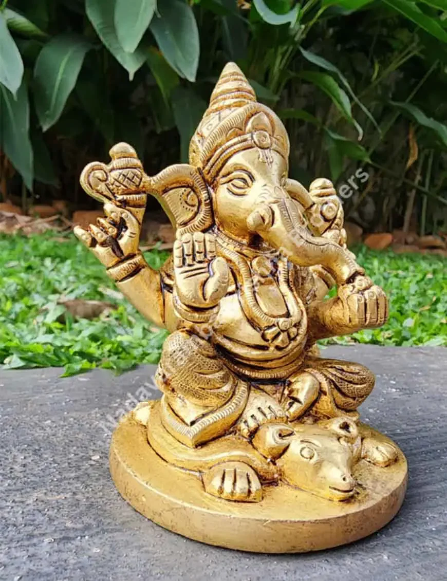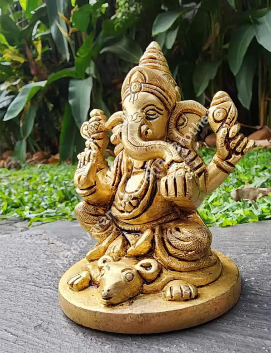 Total height – 5 inches & Width – 3 inches. Statue weighs approximately 900g. This Lord Ganesha is fully made out of Brass & is finished with utmost craftsmanship and is in Antique finish. This Antique finish will last long if maintained properly. Lord Ganesha is believed to grant happiness as well as a good start to any journey – be it buying a property or starting a business, etc. It is most auspicious to have a ganesha/ganapathi statue at one’s home or office. He helps to start our day and to do our activities without any disturbances or hurdles.