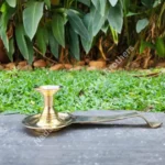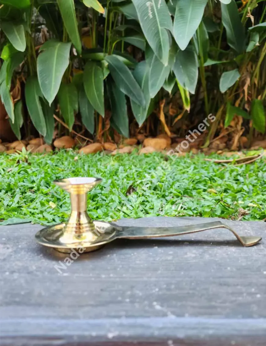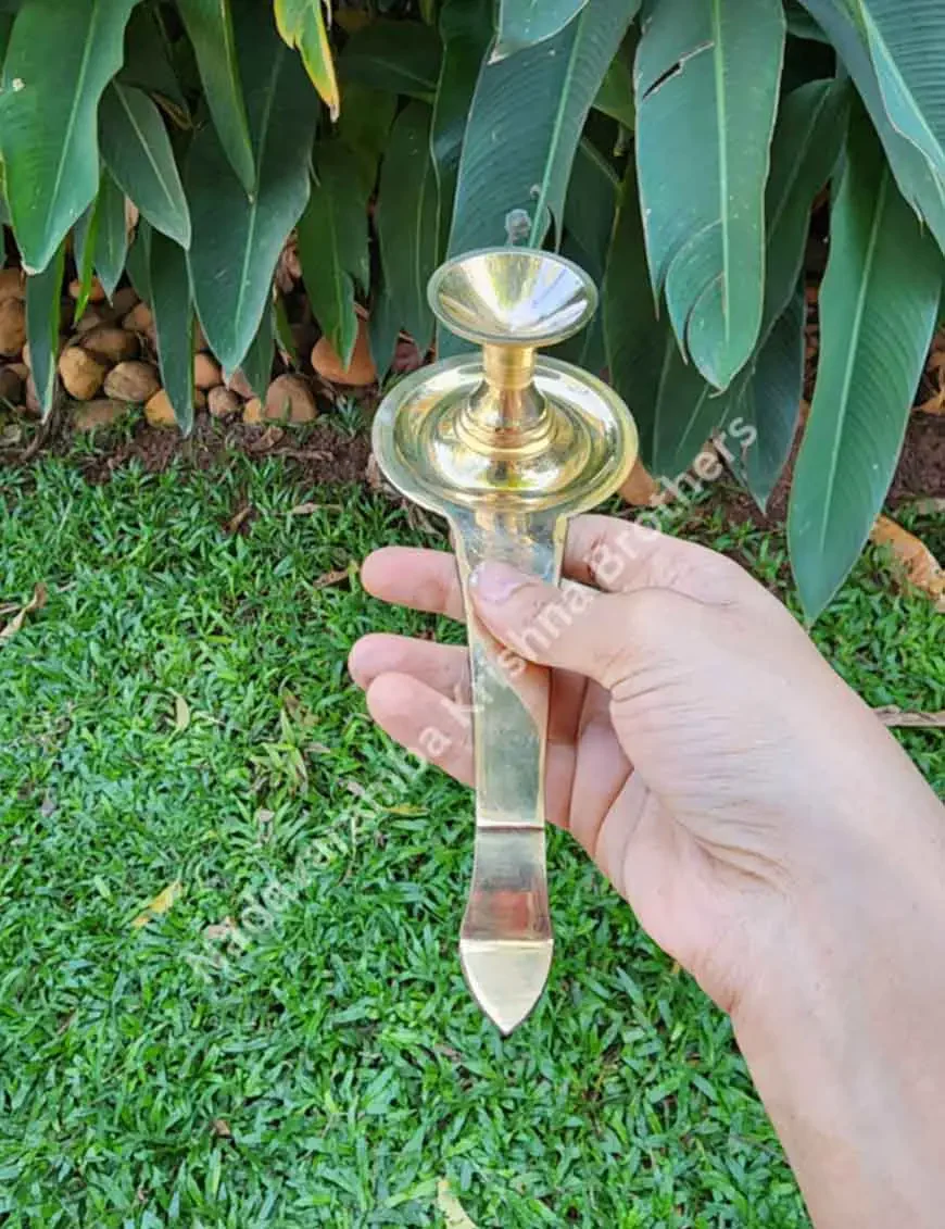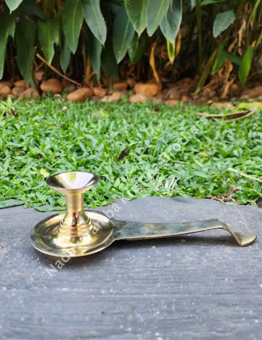 Designed to securely hold camphor tablets or pellets during Pooja ceremonies and rituals. The smooth brass surface of the Karpoora Thattu ensures easy cleaning and maintenance.