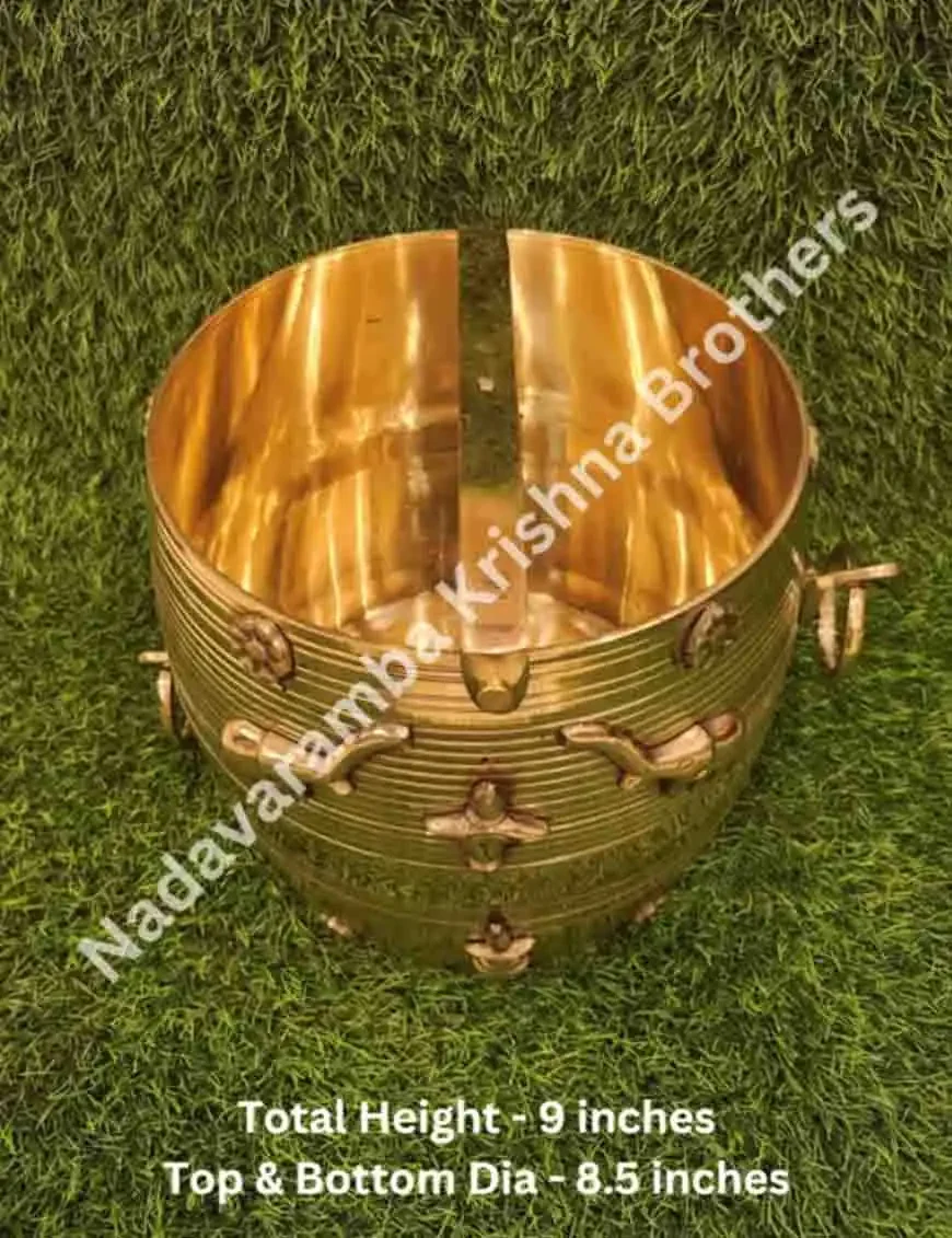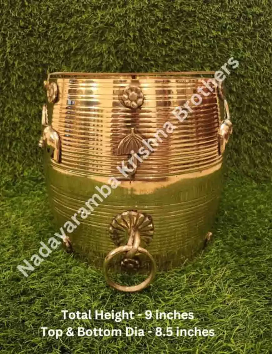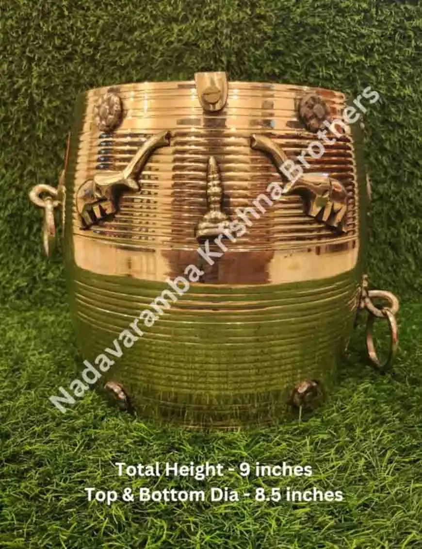 Total height – 9.5 inch, Top & Bottom dia – 9 inches, weight – 3.900 kg. This is These are one of the oldest traditional products of Kerala which can be seen in almost every household and even in temples of Kerala. These were originally used as measuring tools for rice paddy in earlier times, nowadays it is used for festivities/marriages in kerala or even as a home décor. Measurements are 4 Naazhi = 1 Idangazhi(Edangazhi) & 10 Idangazhi(Edangazhi) = 1 Para.