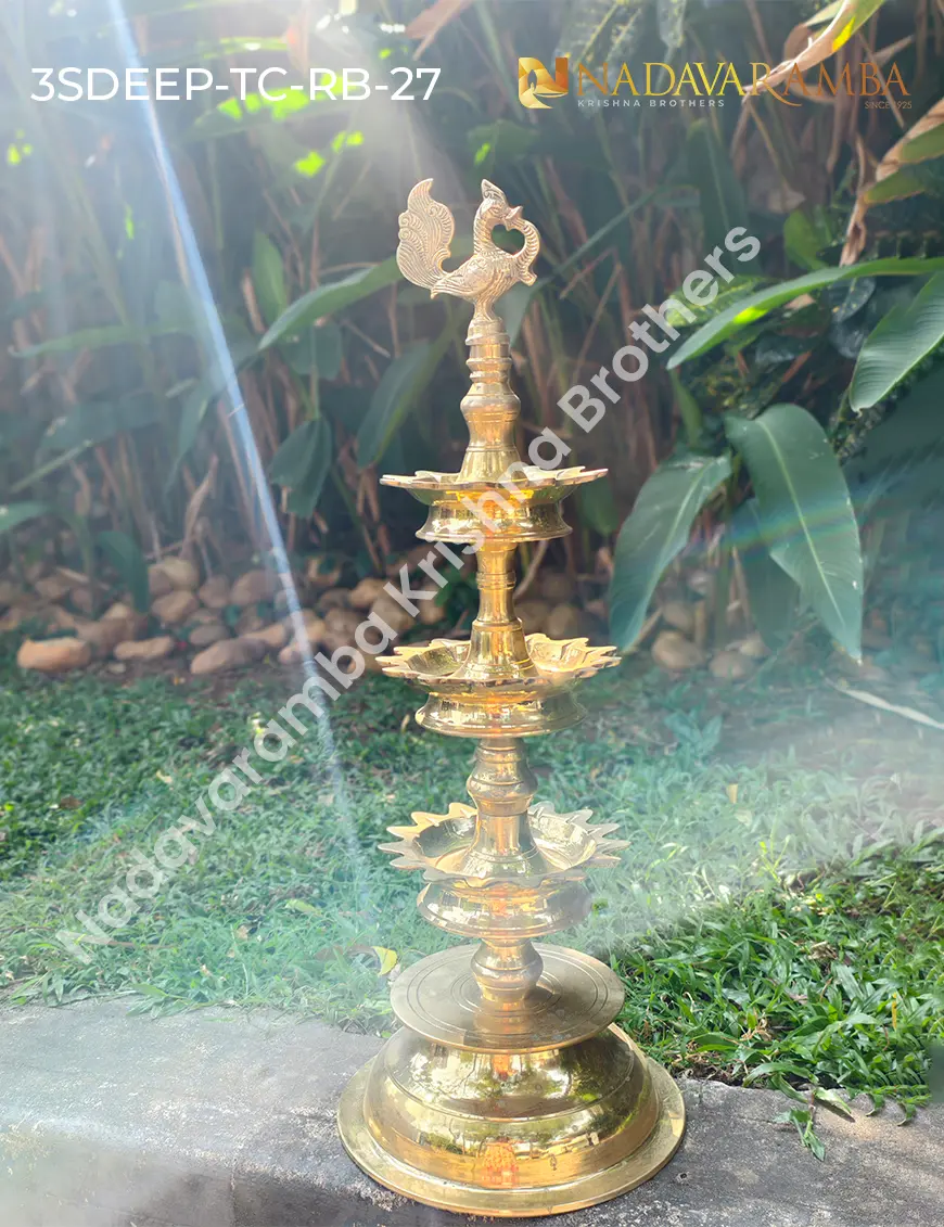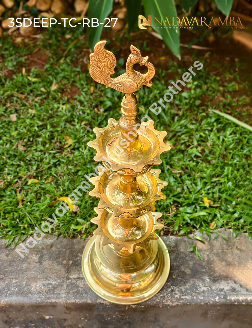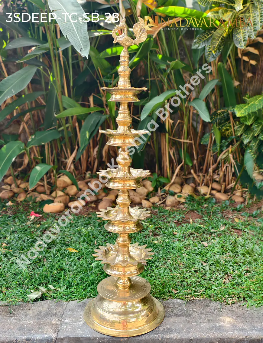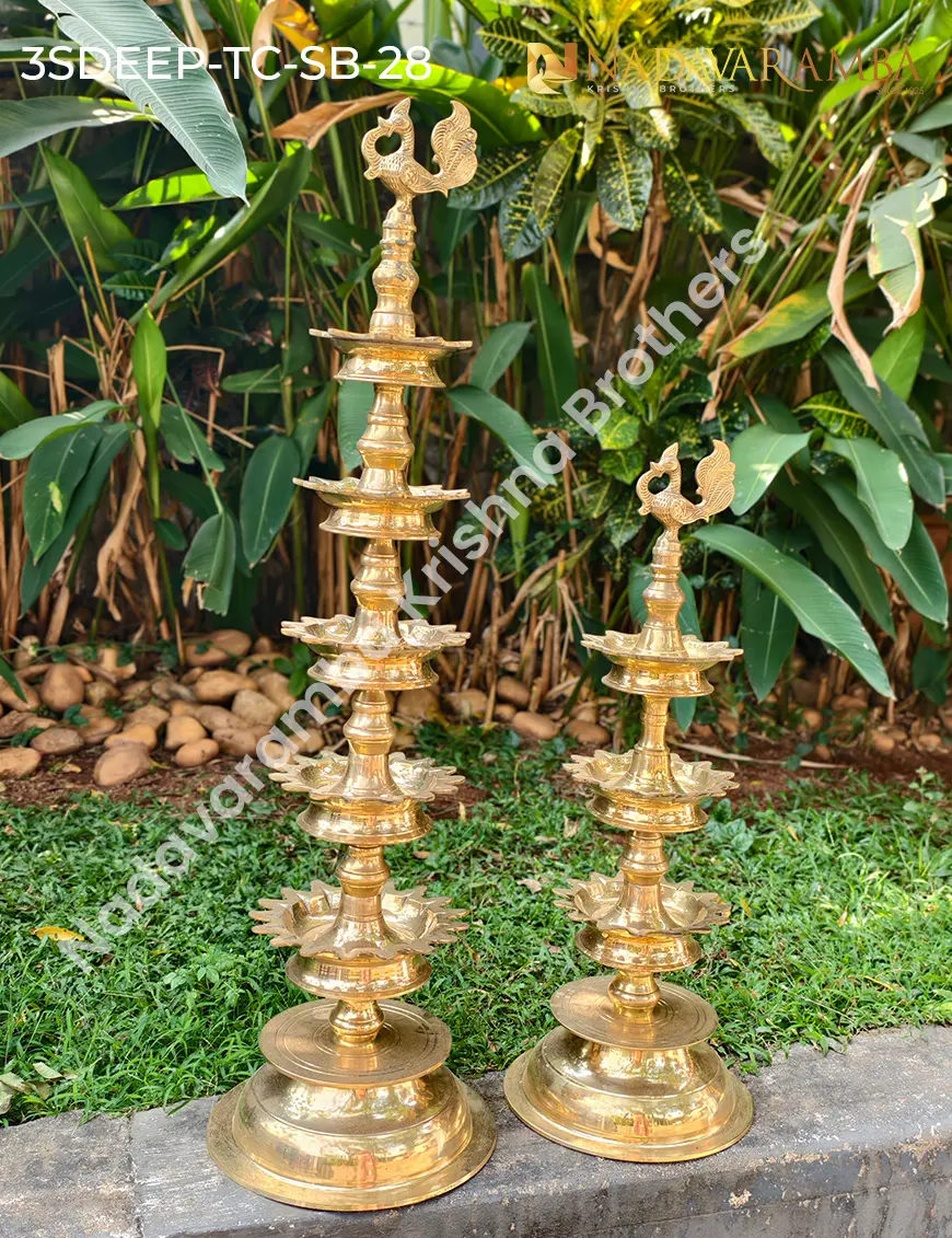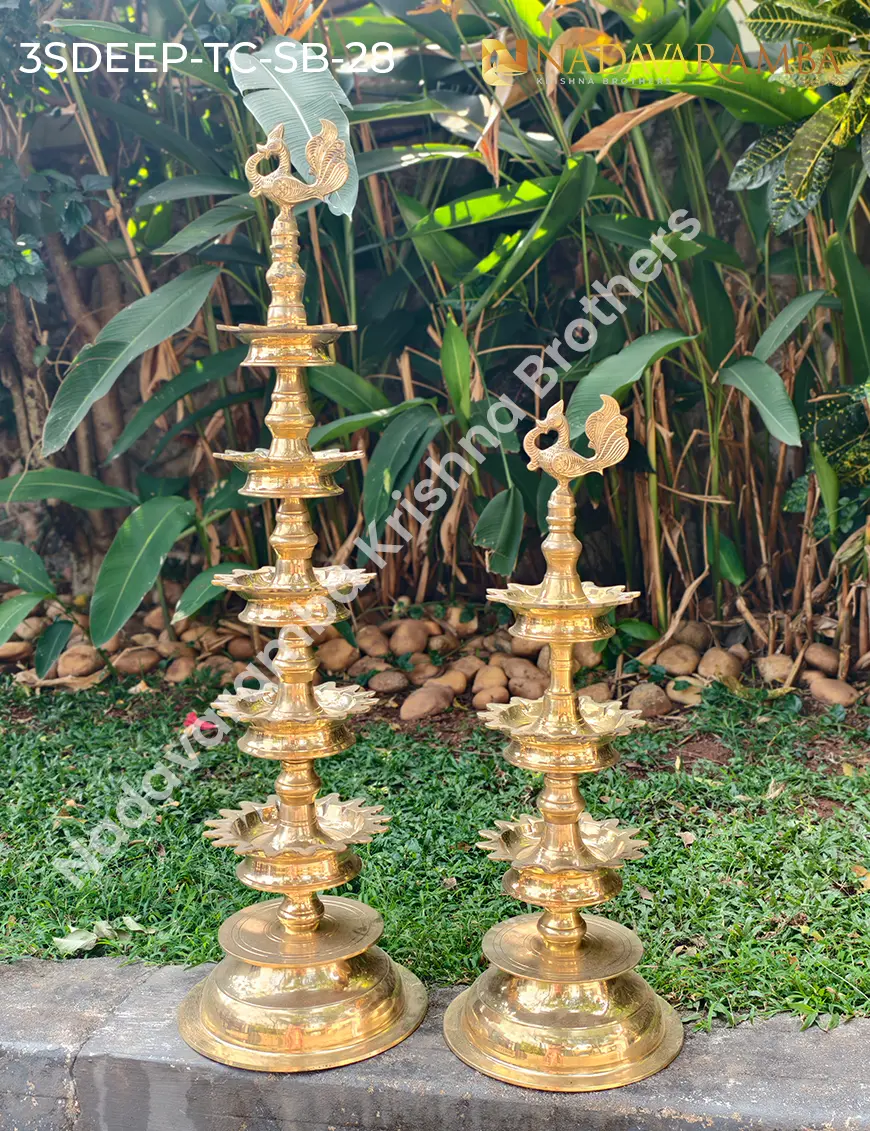 The Deepastambham (3SDEEP-TC Series) is a majestic traditional lamp stand designed to bring a grand and divine presence to pooja spaces, entrances, and temple settings. Featuring a beautifully crafted peacock motif at the top, it symbolizes grace, prosperity, and spiritual elevation, making it ideal for both ceremonial and decorative use.