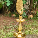 Brass Panch Mahal Deepam is a traditional South Indian oil lamp, commonly used in temples and during auspicious ceremonies. At the top of this majestic lamp sits a beautifully designed peacock, symbolizing grace and spirituality. Made from high-quality brass, this decorative deepam symbolizes spiritual enlightenment and is perfect for Diwali celebrations. It enhances the beauty of any home altar or décor setup with its warm, inviting glow.