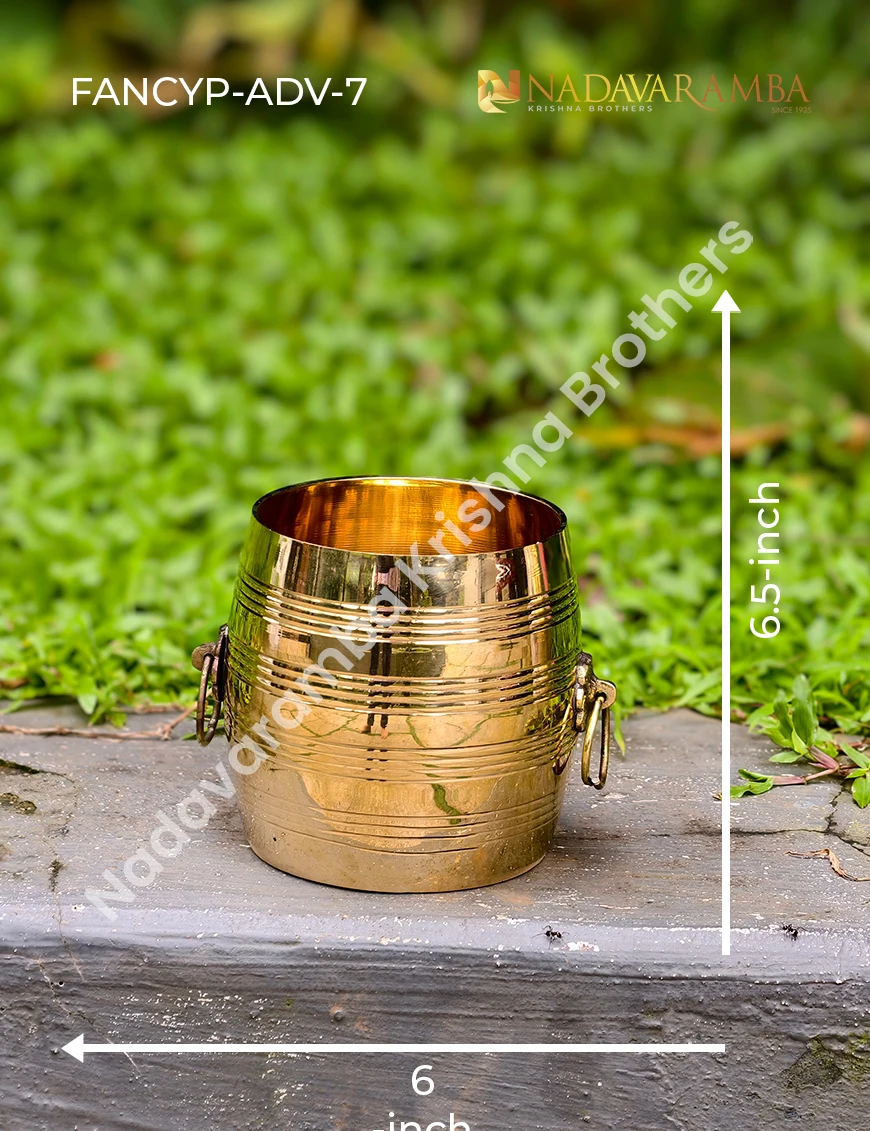 The Fancy Para (FANCYP-ADV Series) is a beautifully crafted traditional brass para designed with a polished antique finish, showcasing timeless Kerala craftsmanship. Made from high-quality solid brass, it reflects elegance, durability, and cultural heritage, making it perfect for pooja rituals, festive décor, gifting, temple use, or as a beautiful decorative centerpiece in homes and offices.