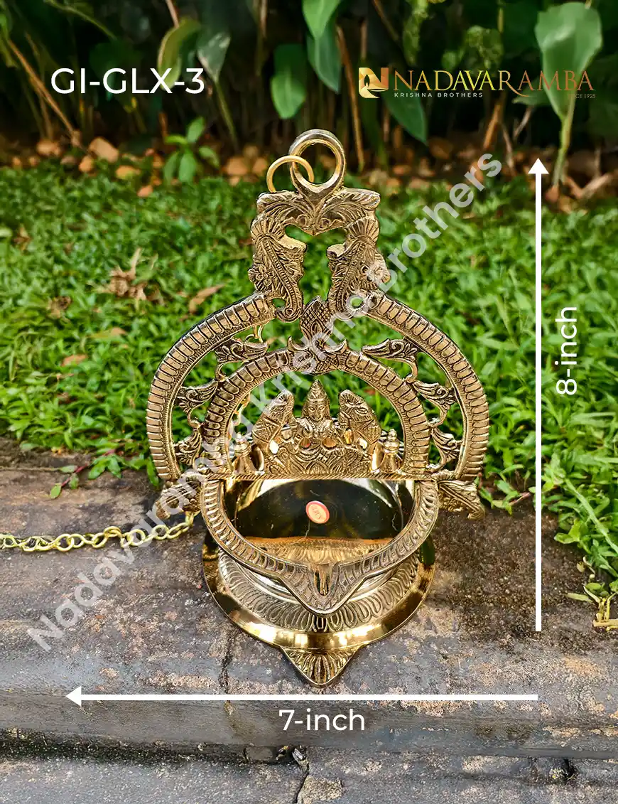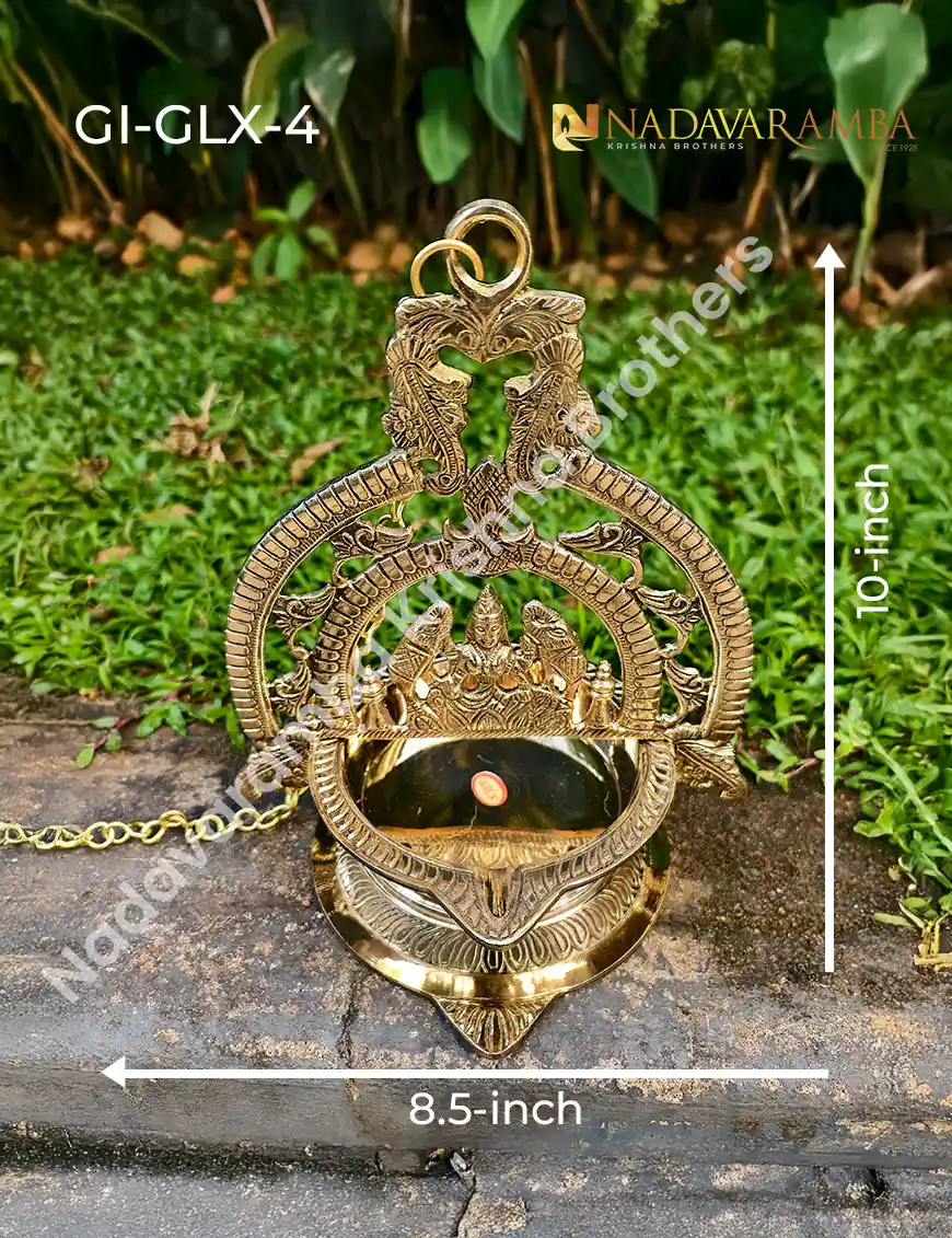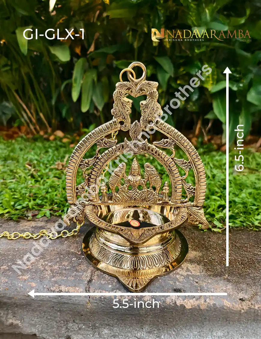 Illuminate your surroundings with the delicate charm of our artistically handcrafted brass hanging Vilakku. Designed with intricate details, these lamps create a magical ambiance that captivates hearts as they effortlessly radiate beauty and serenity.