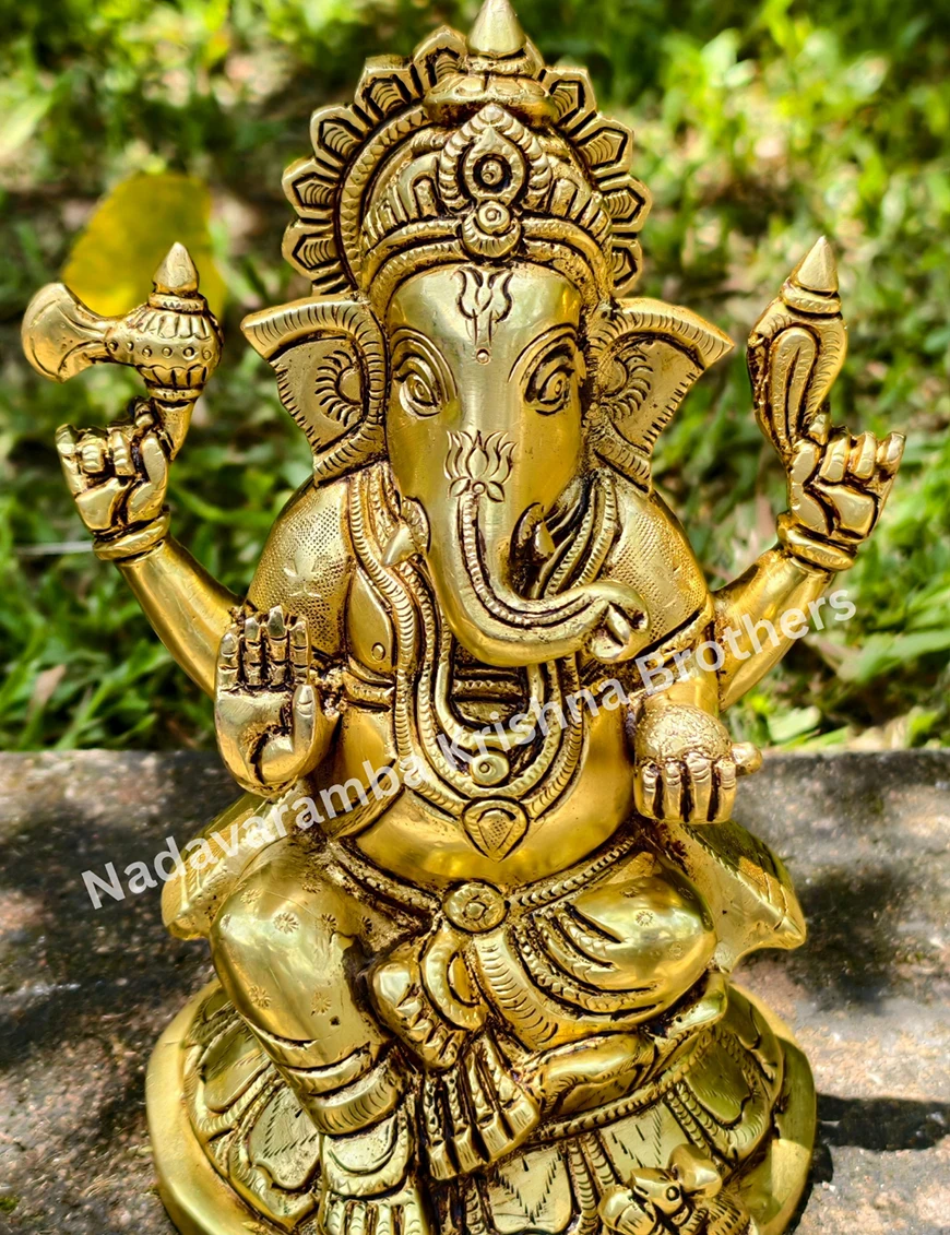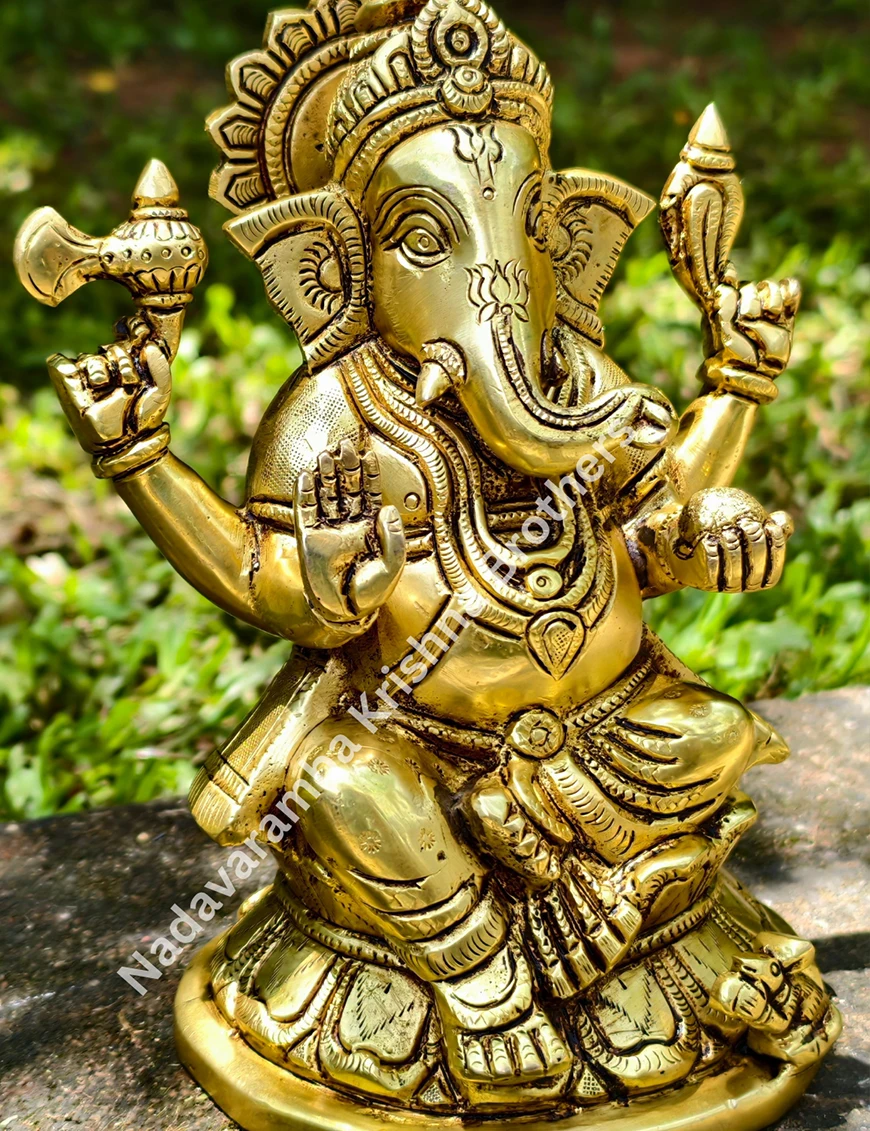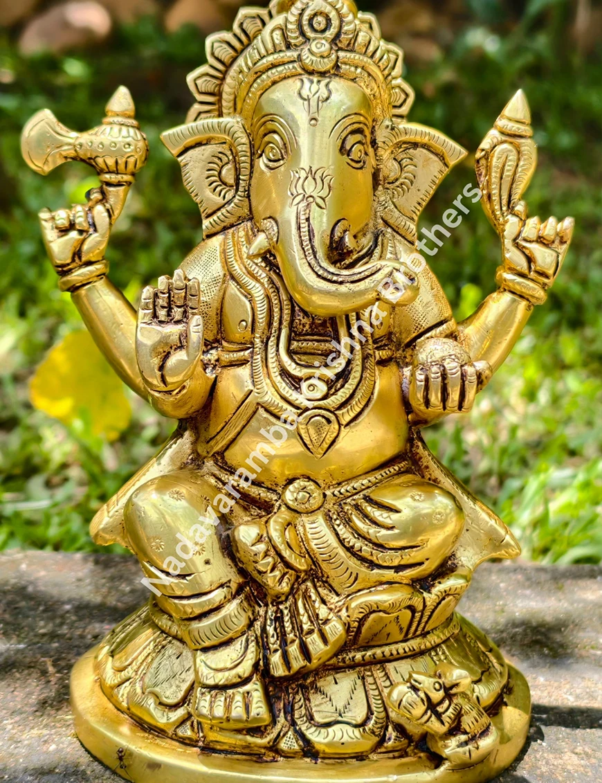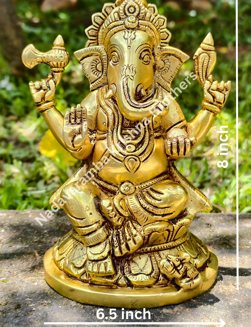 The GAN-SAIS-8 is an exquisitely handcrafted brass idol of Lord Ganesha, symbolizing wisdom, prosperity, and harmony. Designed with meticulous detailing and an elegant antique finish, this idol beautifully portrays Lord Ganesha seated in a calm and graceful posture, radiating divine energy and positivity. Expertly crafted by skilled artisans, it reflects traditional Indian artistry and devotion. Ideal for pooja rooms, temples, or as a sacred décor piece, it brings blessings and elegance to any space. Perfect for daily worship or as a meaningful gift, this idol embodies purity, grace, and timeless spiritual beauty.