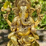 Total height – 5 inches & Width – 3 inches. Statue weighs approximately 900g. This Lord Ganesha is fully made out of Brass & is finished with utmost craftsmanship and is in Antique finish. This Antique finish will last long if maintained properly. Lord Ganesha is believed to grant happiness as well as a good start to any journey – be it buying a property or starting a business, etc. It is most auspicious to have a ganesha/ganapathi statue at one’s home or office. He helps to start our day and to do our activities without any disturbances or hurdles.