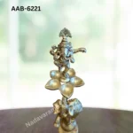 The COWKRISHNA-SAIS-85 is a stunning handcrafted brass idol of Lord Krishna with a sacred cow, symbolizing love, compassion, and divine protection. Beautifully detailed and finished with an antique polish, this masterpiece captures Lord Krishna’s serene posture as he stands gracefully beside the holy cow, radiating peace and purity. Expert craftsmanship brings out every intricate feature, reflecting devotion and traditional artistry. Perfect for pooja rooms, temples, or home décor, this idol fills any space with positivity and spiritual charm. Ideal for worship, festive décor, or gifting, it embodies grace, divinity, and timeless beauty.