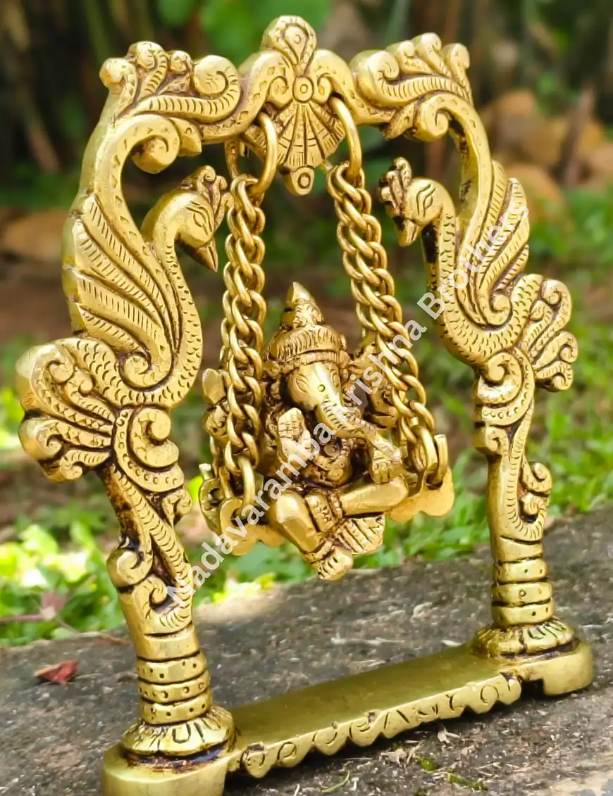 The Brass statue depicts Lord Murugan also known as Karthikeyan holding a Vel and sitting on a beautiful peacock. The statue weighs about 1.43 Kg, it is 6 inches in height and 3.5 inches wide in width. Kartikeya, also known as Skanda, Subrahmanya, Shanmukha and Murugan, is the Hindu god of war. Lord Murugan is a powerful Hindu deity who is the son of lord Shiva and goddesses Parvathi. Lord Murugan is the younger brother of lord Ganesha. Bring home this exquisitely handcrafted brass masterpiece and be blessed with courage and protection.