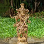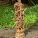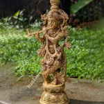 Dimensions: Height – 30 inches & Width – 8 inches. Statue weighs approximately 16 Kg. This Lord Krishna idol is fully made out of Brass & is finished with utmost craftsmanship and is in Antique finish. This Antique finish will last long if maintained properly.