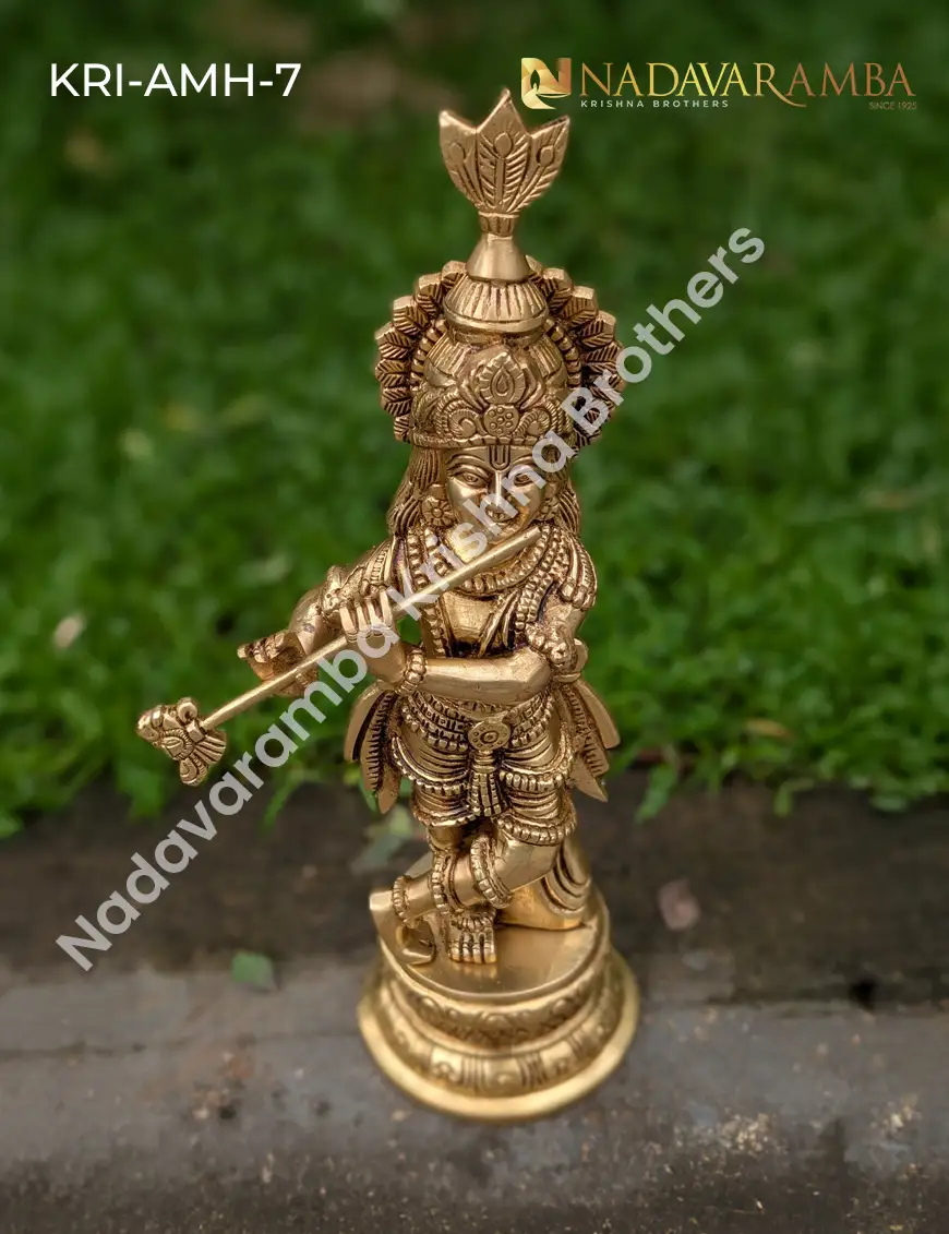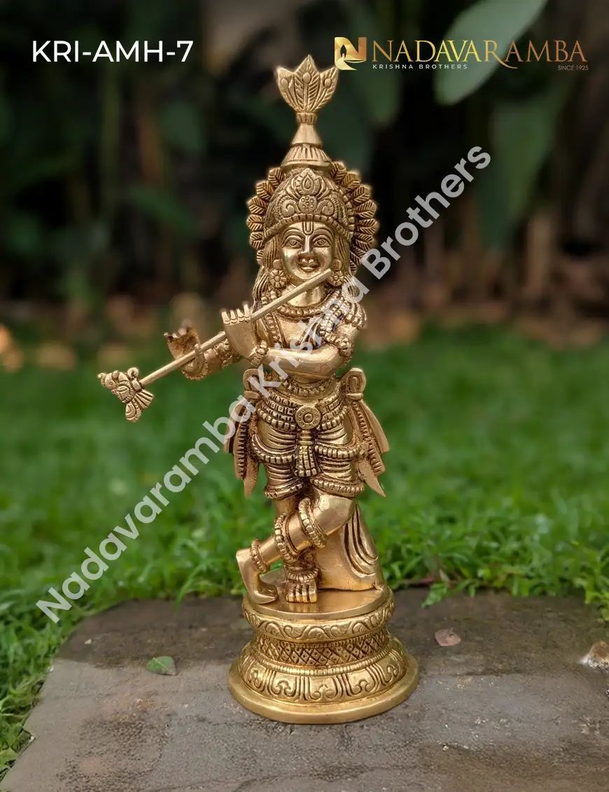 Bring home the essence of devotion, music, and eternal charm with this stunning Lord Krishna idol – Superfine New Model (KRI-AMH-7). Elegantly crafted with a big round base, this statue features Lord Krishna in his iconic flute-playing posture, exuding serenity and spiritual grace.