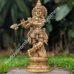 Total height – 8 inches & Width – 3 inches. Statue weighs approximately 1.15 Kg. This Lord Krishna idol is fully made out of Brass & is finished with utmost craftsmanship and is in Antique finish. This Antique finish will last long if maintained properly.