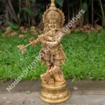 The Krishna Round Base 9 Inch statue is a magnificent representation of Lord Krishna, crafted with intricate detailing and a lustrous golden finish. Depicting the divine figure in a mesmerizing flute-playing posture, this masterpiece radiates serenity and devotion. Standing gracefully on a round pedestal, the idol captures the essence of Krishna’s divine charm, adorned with elaborate ornaments and flowing drapery. A symbol of love, wisdom, and spiritual bliss, this handcrafted sculpture is ideal for home décor, temple worship, or as a meaningful gift for devotees, bringing a sacred and peaceful aura to any space.