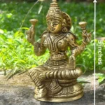 Total height – 5 inches & Width – 3 inches. Statue weighs approximately 700 g. This Goddess Laxmi/Lakshmi is fully made out of Brass & is finished with utmost craftsmanship and is in Antique finish. This Antique finish will last long if maintained properly. Goddess Laxmi is believed to grant wealth/money & auspiciousness to those who worship.