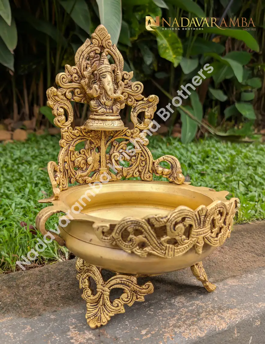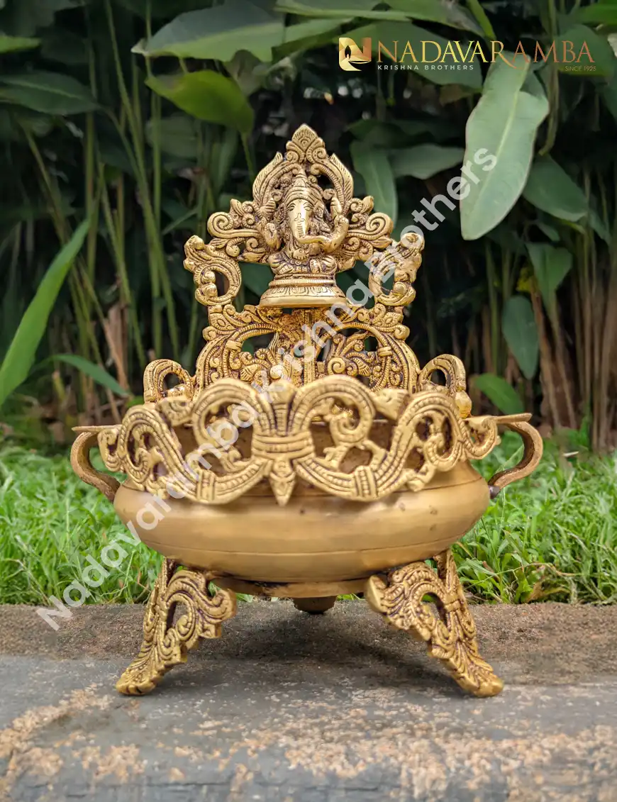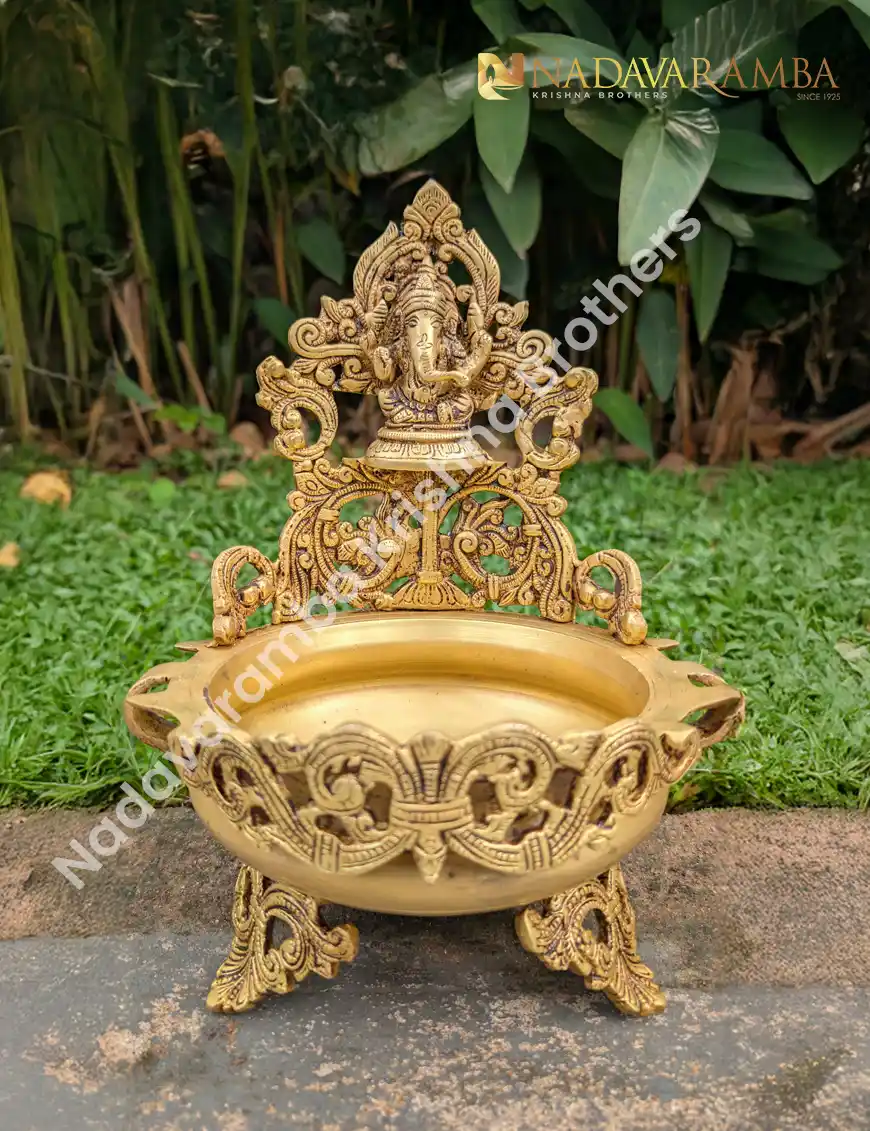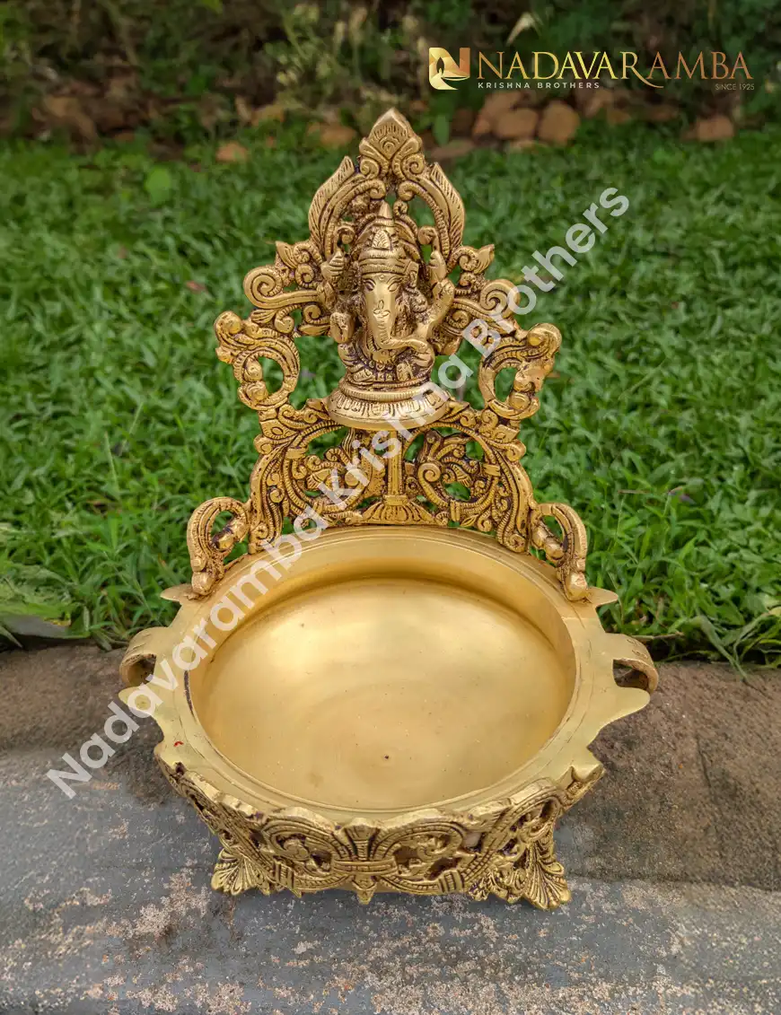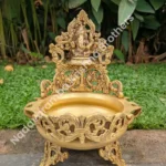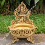 The Medium Fancy Urli With Ganesh is an exquisite blend of traditional artistry and spiritual elegance. Measuring perfectly for prominent display, this urli features a beautifully crafted Ganesha at the center, symbolizing wisdom, prosperity, and positivity. Its intricate designs and smooth finish enhance the aesthetic appeal, making it ideal for pooja rooms, courtyards, or living spaces. Perfect for floating flowers, candles, or as a decorative centerpiece, this medium-sized urli radiates serenity and charm. Durable yet elegant, it makes a thoughtful gift for festivals, housewarmings, or special occasions, bringing divine blessings and a touch of grace to every home.