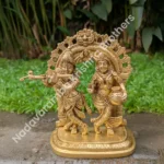 Celebrate divine love and eternal devotion with this exquisitely crafted Radhakrishna with Arch – Medium Size idol. This traditional sculpture captures Lord Krishna playing his flute alongside Radha, his eternal consort, framed beautifully within a detailed ornamental arch (prabhavali) that symbolizes celestial grandeur and spiritual harmony.