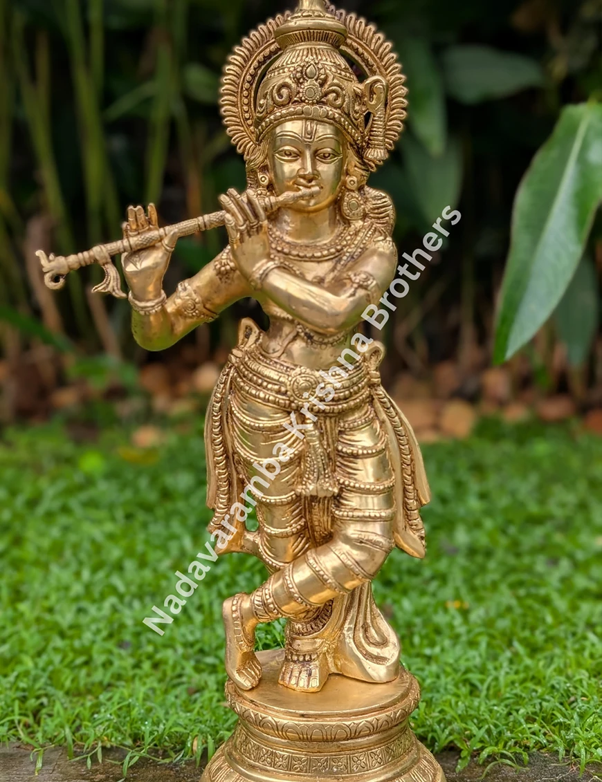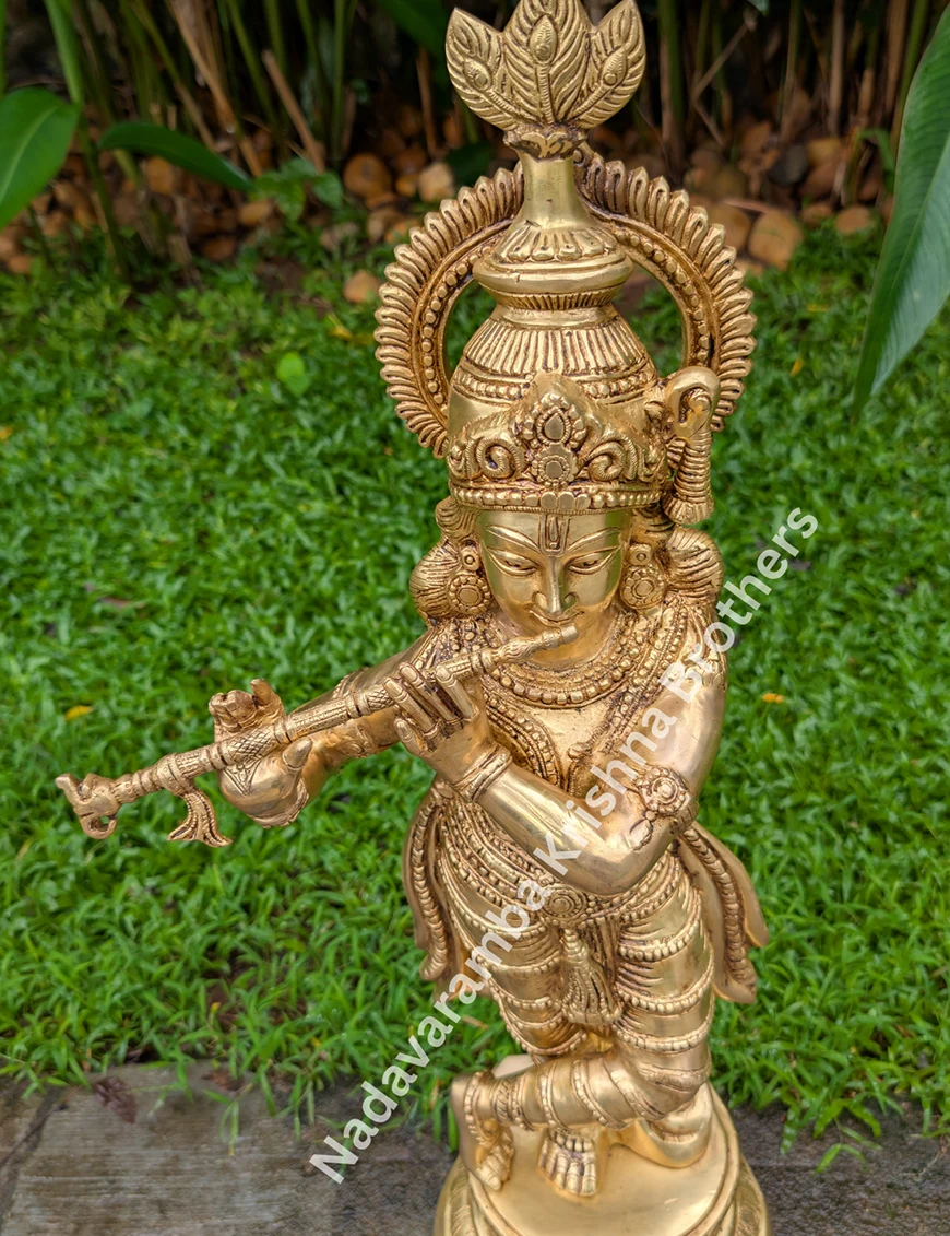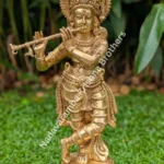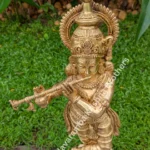 Dimensions: Height – 29 inches & Width – 8 inches. Statue weighs approximately 13.6 Kg. This Lord Krishna idol is fully made out of Brass & is finished with utmost craftsmanship and is in Antique finish. This Antique finish will last long if maintained properly.