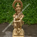 Total height – 7.5 inches & Width – 5 inches. Statue weighs approximately 2.2 Kg. This Goddess Saraswati/Saraswathy is fully made out of Brass & is finished with utmost craftsmanship and is in Antique finish. This Antique finish will last long if maintained properly. Goddess Saraswati is believed to be the goddess of wisdom & knowledge.